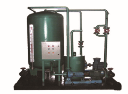 熱水鍋爐和油田熱采的鍋爐給水溫度均為常溫水,冬季都在0°C左右,給常規(guī)除氧帶來一定難度。我公司吸收國外先進技術在同一真空條件下實現(xiàn)兩級補水除氧,當一次進水(0°C左右)進入一級除氧真空缸內,真空在−0.085Mpa時,除氧水可以把溫度提高到40℃,粗除氧的鍋爐給水經增壓泵再次送入二級增壓旋膜器,通過旋膜器進行二次分配,形成水膜裙,氧氣充分析出,氧氣被真空泵組吸出。給水含氧量可控制在100ug−50ug/L以下。