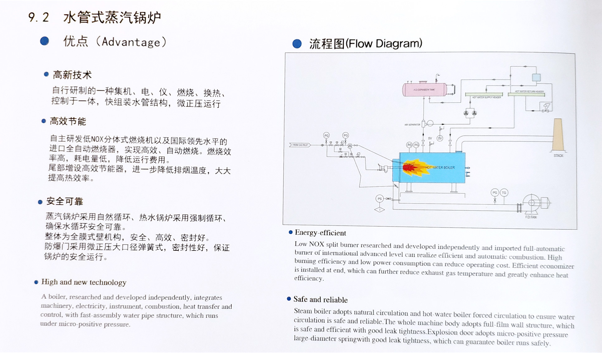 • 自主研發(fā)低NOX分體式燃燒機(jī)以及國(guó)際領(lǐng)先水平的進(jìn)口全自動(dòng)燃燒器,實(shí)現(xiàn)高效、自動(dòng)燃燒。燃燒效率高,耗電量低,降低運(yùn)行費(fèi)用。